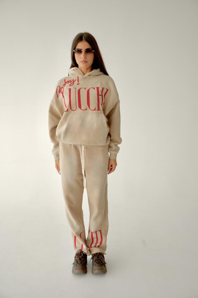- طباعة كبيرة وواضحة لتوقيع LUCCHI من الأمام والخلف أسفل البنطلون